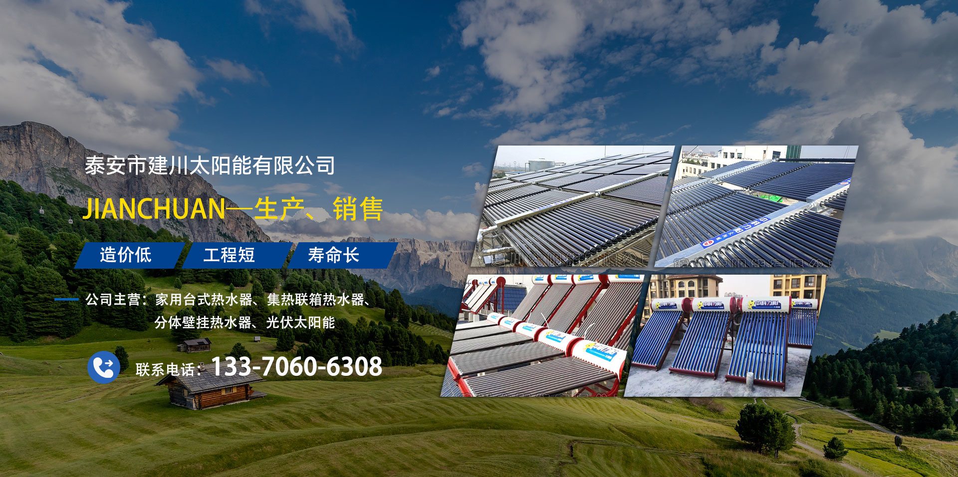泰安市建川太陽能有限公司是一家從事太陽能系列產(chǎn)品及工程聯(lián)箱類產(chǎn)品的生產(chǎn).銷售為一體的企業(yè),企業(yè)設(shè)備性能優(yōu)良